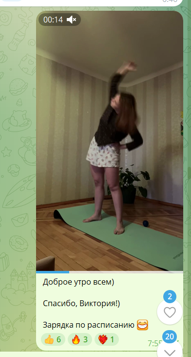 Очень круто работает отчетность кому-то! Чтобы зарядка закрепилась в привычке, я снимала свою зарядку для участников LifeOS, что вот я тоже каждый день ее делаю!)